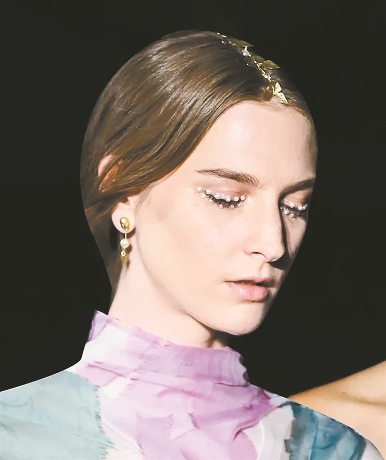 “其实热播剧里的妆容造型也是有灵感依据的,比如《墨雨云间》中的‘珍珠妆’就取材自宋朝。”IMA国际化妆造型协会常务理事、TiffCollection设计师品牌集合店主理人黄静怡表示,这在当时是流行于贵族女性的化妆潮流,珍珠装饰面部有种尊贵的象征。“但放到现代语境下,珍珠更多是作为流行元素被采用,主打个性点缀,强调整体亮晶晶的时髦感。”