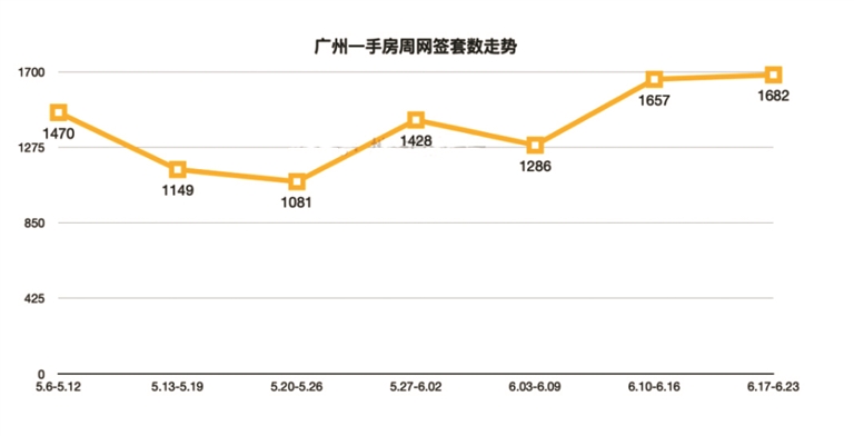 以广州市场来看,上周(6月17日~6月23日),广州全市新建住宅(一手房)共网签1682套,环比微涨1.6%,合计建筑面积183991平方米,环比涨0.7%,周网签量已经连续两周实现上涨。同时,二手市场成交量也明显提升,贝壳找房的数据显示,上周末单天二手成交201套,创年内单日成交新高,可见新政效力仍在持续显现,二手房起色明显。
