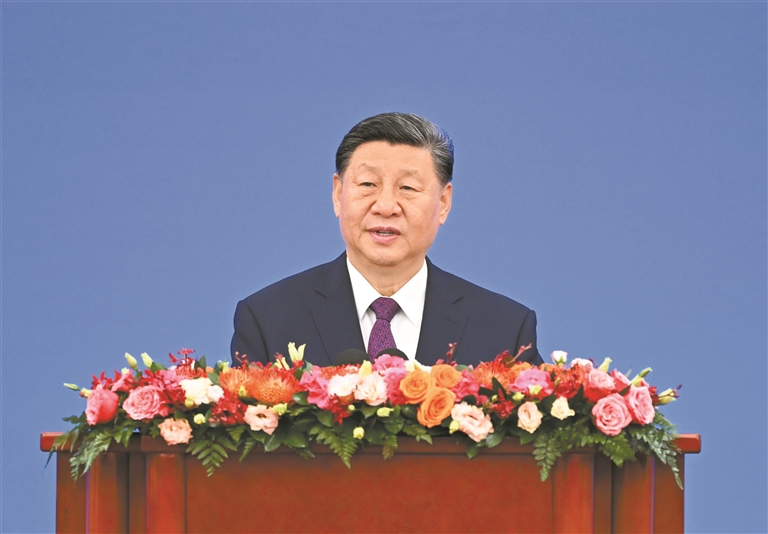 习近平强调,70年后的今天,面对“建设一个什么样的世界、如何建设这个世界”的重大课题,中国又给出了构建人类命运共同体这个时代答案。构建人类命运共同体理念与和平共处五项原则一脉相承,都根植于亲仁善邻、讲信修睦、协和万邦的中华优秀传统文化,都彰显了中国外交自信自立、坚持正义、扶弱扬善的精神风骨,都体现了中国共产党人为人类作出新的更大贡献的世界情怀,都展现了中国坚持走和平发展道路的坚定决心,是新形势下对和平共处五项原则最好的传承、弘扬、升华。这一理念立足于国与国命运交织、休戚与共的客观现实,树立了平等和共生的新典范;顺应和平、发展、合作、共赢的时代潮流,开辟了和平和进步的新境界; (下转4版)