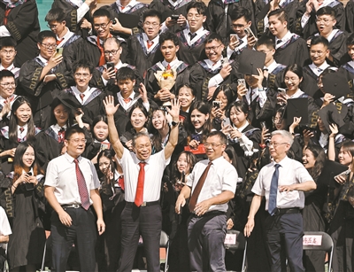 昨天上午,在毕业典礼正式开始前一个小时,钟南山院士来到学校,分别与本科毕业生、硕士毕业生和博士毕业生合影。同学们一看到钟南山院士,纷纷欢呼起来。