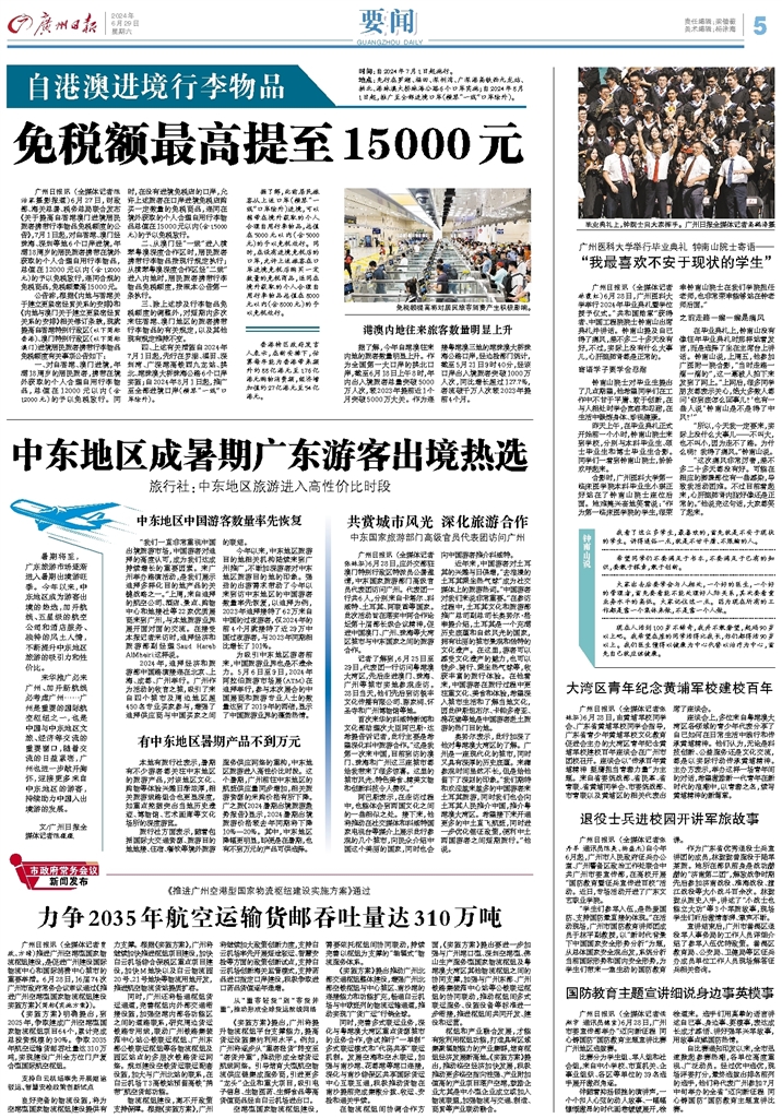 - 中东地区成暑期广东游客出境热选 暑期将至,广东旅游市场逐渐进入暑期出境游旺季。今年以来,中东地区成为游客出境的热选,加开航线、五星级的航空公司和酒店服务、独特的风土人情,不断提升中东地区旅游的吸引力和性价比。 来华推广必来广