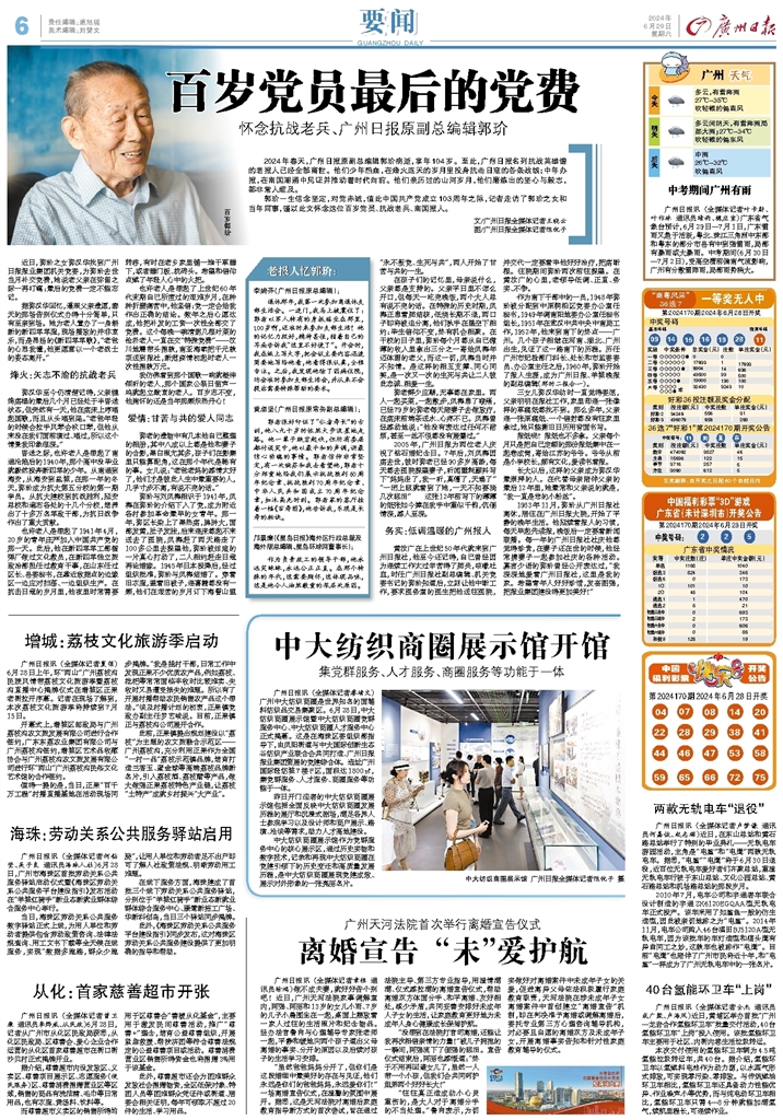 - 百岁党员最后的党费 2024年春天,广州日报原副总编辑郭玠病逝,享年104岁。至此,广州日报名列抗战英雄谱的老报人已经全部离世。他们少年热血,在烽火连天的岁月里投身抗击日寇的各条战线;中年办报,在南国潮涌中见证并推动