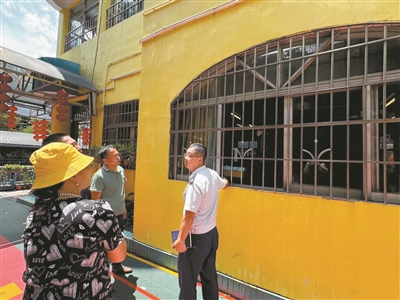 7月3日,在位于江同路的一家幼儿园内,督查组现场对该园疏散通道、疏散楼梯和安全出口的位置、数量是否符合要求,是否设置栅栏或采取其他形式锁闭、封堵进行了检查。