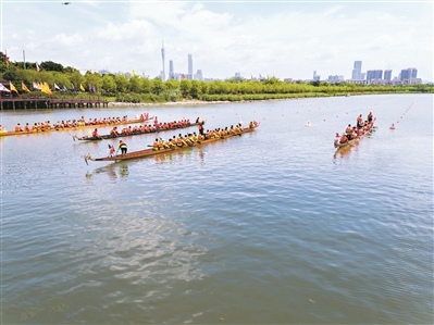 今年端午节,天河区猎德涌热闹非凡,上百艘龙船沿着珠江水网接踵而来,龙舟争流竞渡,猎德涌两岸彩旗飘扬、人潮涌动,一片欢欣,猎德涌从昔日的黑臭河涌变成了水清岸绿、白鹭翩跹的幸福河。