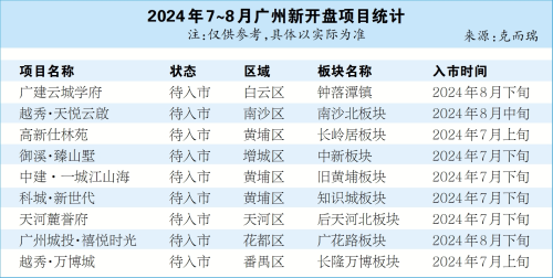 一般经历了年中的冲刺,作为楼市传统淡季,7~8月开发商、买家会进入暂时的“调整期”,市场推货节奏放缓, 但今年的情况显然有点不同。近日,天河、黄埔等区域不少全新重磅项目亮相。据克而瑞不完全统计,7~8月广州预计有9个全新盘入市,以外围区项目为主,中心四区仅有1个项目,其中黄埔区入市项目数量最多,有3个。