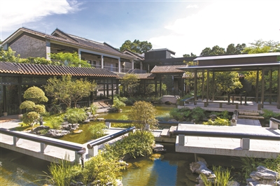 我们把很多艺术家赠送给广州酒家的作品,用岭南工艺美术如广绣、岭南玻璃画这种手法把它演绎出来,装饰客房。我们还借用很多岭南建筑艺术的元素,比如把余荫山房的窗、陈家祠的门套以及岭南特有的满洲窗、岭南木雕等艺术元素,全部重新解构,作为环境和房间的装饰元素,植入到岭南的园林里面和房间的艺术陈设中,让人耳目一新。我们还把石湾公仔、广彩和书法家的书法结合,不经意间赋予新的内涵。