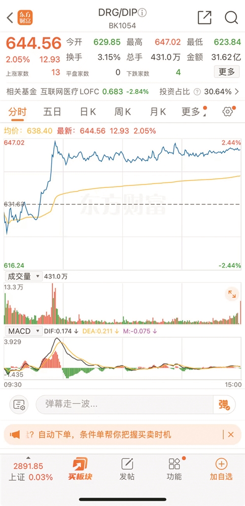 好消息一出,A股DRG/DIP板块迎来股价上涨。“国家层面大力推动DRG/DIP改革,其核心目标在于提升医院的管理效率,优化医保资金使用,控制医疗费用的过快增长。伴随着政策的落地,市场对相关企业的预期不断升温,相关公司的业务量和盈利能力有望大幅提升。”有行业观察人士表示,DRG/DIP的推广将带动医疗信息化系统的升级以及相关数据分析服务的需求增长,这为医疗IT企业带来更多机遇。