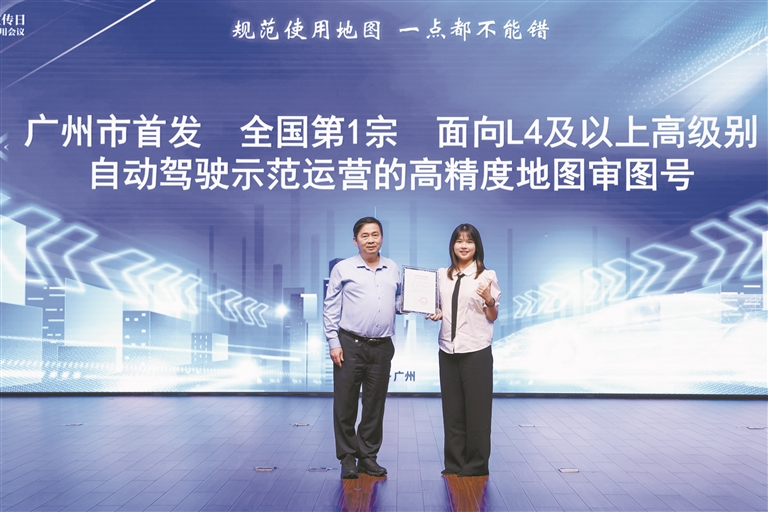 高精度地图作为智能网联汽车的“千里眼”,是自动驾驶技术的重要“拐杖”,8月28日上午,在第21个全国测绘法宣传日暨广州自动驾驶高精地图应用主题活动上,广州市规划和自然资源局向广州纤离科技有限公司发放了全国第一宗面向L4级及以上高级别自动驾驶运营的高精度地图审图号,助力自动驾驶企业规模化合规运营,助推广州智能网联汽车产业跑出“加速度”。