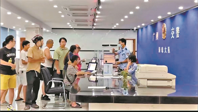 随后记者走访了天河区、海珠区等多地交警大队,发现各区办理该业务量的需求确实较高,在天河某交警大队,办理相关业务的市民甚至都已排到门口。