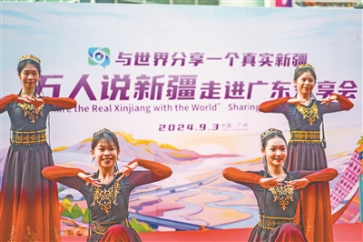 广州日报讯 (全媒体记者 赵方圆)“我要来唱一唱我们的家乡,我们的家乡是最美的地方……这里是家乡,是我们爷爷生活的地方。”昨日,伴随新疆特色民族歌舞的表演拉开帷幕,“万人说新疆”走进广东分享会分会场活动在穗举行。记者现场看到,文化市集区设置了新疆美食、新疆非遗、新疆文旅、民族服饰等多个特色展位。
