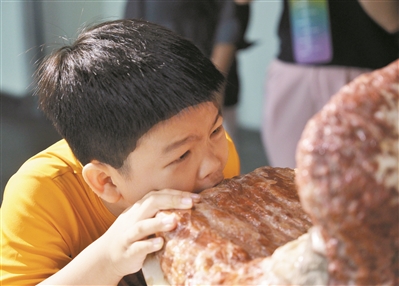 “这里的石头琳琅满目,既有世界各地的奇石、宝石,也有花都本地的‘菊花石’,很长知识!”在花都石头记公园,“广州市书香家庭”江永强一家充满了兴趣。花都石头记公园以奇石、化石、宝石为主题,展示了世界各地的精美宝石、矿物、化石和奇石等自然遗产。走进矿物园,大家好奇、兴奋地探索疯狂的石头,五彩斑斓的矿石形态各异,每一块石头都仿佛在诉说着地球的历史与变迁。公园内的主题展区也非常有趣,包括时空隧道、流星石、满汉全席、海洋之梦、水晶观音等。时空隧道清凉、幽暗、古朴、深邃,提供时光倒流的体验,让人回溯到亿万年前的远古。巨型紫晶洞是迄今发现最高的紫晶洞之一,高达4.4米、重6吨多。最吸引“眼球”的是“满汉全席”:一席四大桌盘盏交叠,餐具餐巾一应俱全,走近一看,满桌“菜肴”却是石头。一块石头一个故事,记录着石头记矿物园的人文物语。