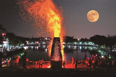 烧番塔是南方多地在过中秋节时开展的一项民俗活动。在被誉为“珠江文明的灯塔”的西樵山脚下,有一个充满历史韵味的古村落——西樵上金瓯松塘村,在这里,传承数百年、充满仪式感的烧番塔活动尤为盛行。2017年,松塘村烧番塔被列入佛山市第六批市级非物质文化遗产项目名录;2018年,松塘村烧番塔在央视节目《传奇中国节·中秋》中亮相,向全球观众展示了这一岭南民俗文化的魅力,极大地提升了其知名度和影响力。