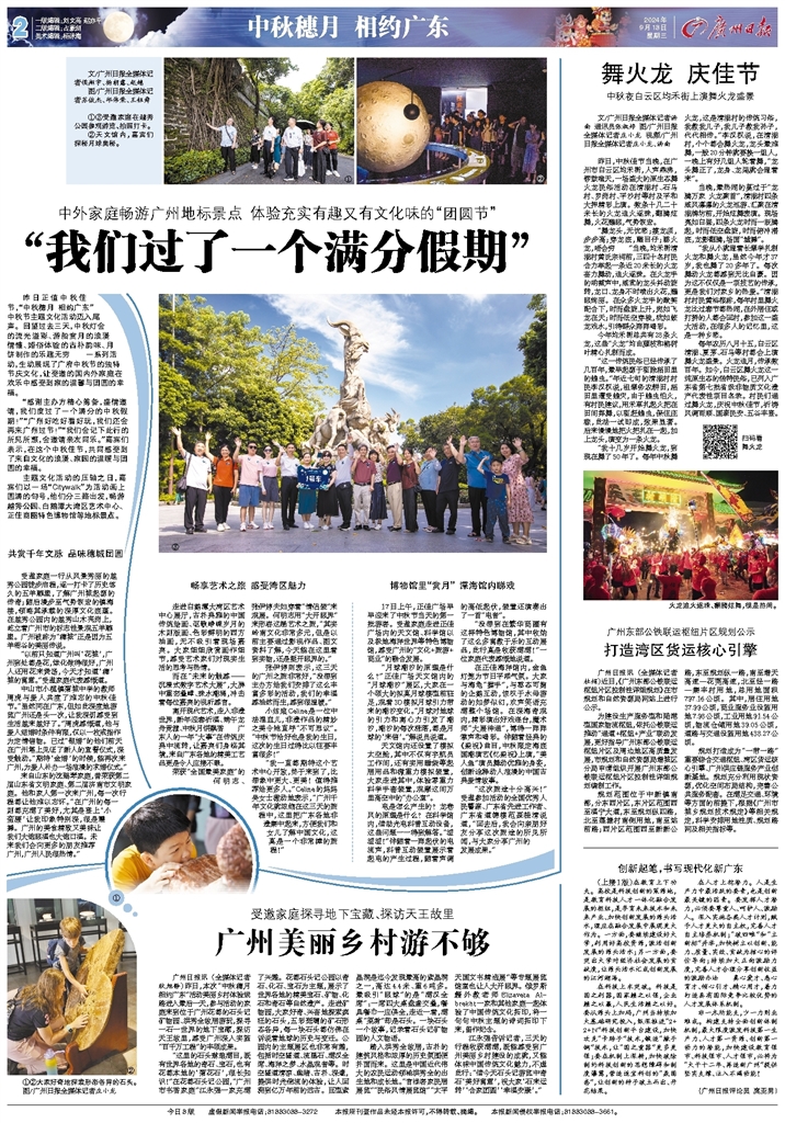 - “我们过了一个满分假期” 文/广州日报全媒体记者侯翔宇、杨朝露、赵越 图/广州日报全媒体记者苏俊杰、邱伟荣、王钰舜 昨日正值中秋佳节,“中秋穗月 相约广东”中秋节主题文化活动迈入尾声。回望过去三天,中秋灯会的流光溢