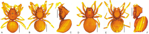 据介绍,四盾蛛科蜘蛛因其腹部覆盖复杂的盾板,被称为“装甲蜘蛛”,可通过腹部平行排列的带状腹盾来识别。与同属其他种相比,丹霞华盾蛛的背甲无明显角状突起,雄性插入器有一个近90度的弯折。