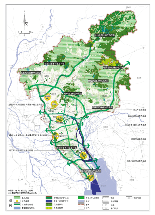 构建市域历史文化风貌整体格局。塑造珠江文化带、流溪河文化带,提升中心城区和九个魅力景观区,整体保护白云山、莲花山等自然和人文遗产,以及非物质文化遗产高度依存的自然环境和文化空间。珠江文化带北起西航道石门、南至狮子洋虎门,长达110公里,串联虎门海防遗存、莲花山、长洲岛、历史城区、石门古港口等重要文化景观节点,统筹珠江两岸空间资源配置,优化功能布局,推动珠江从生产通道向多元活力廊道的转变。流溪河文化带北起从化区吕田镇,南至西航道石门,保护沿河优美的自然生态环境和岭南田园风光,深入挖掘其作为历史重要商贸运输通廊的文化价值,实现从单一的环境治理转变为文化与生态相融合的保护发展模式,形成见山见水见乡愁的魅力文化廊道。
