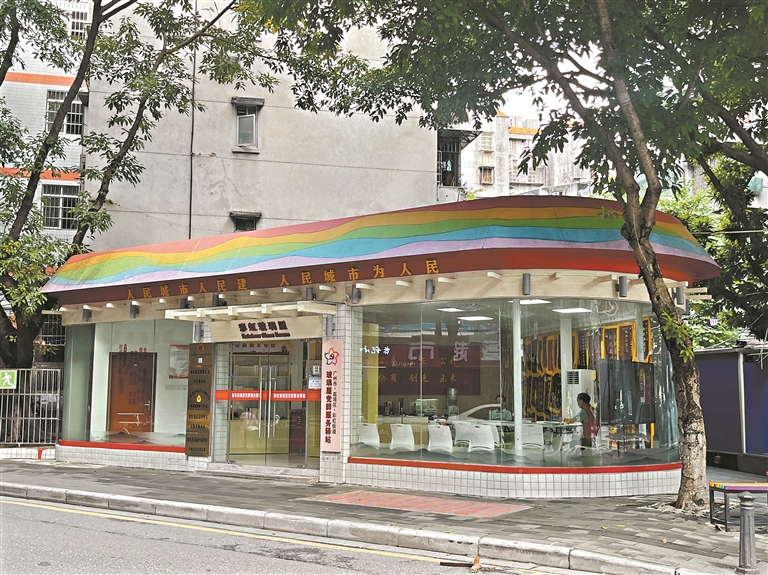 站在“玻璃屋”门口,抬眼望去,几乎都是七层以上的老旧楼梯楼。彩虹街道位于荔湾老城区,辖区60岁以上居民达28%,房屋以上世纪八九十年代的建筑为主。7年前,彩虹街道把退休老党员、热心居民组织起来,成立加装电梯志愿者服务队,开辟“玻璃屋”旧楼加装电梯工作服务站,为居民提供加装电梯咨询、疑难解答、矛盾协调等服务。这是广州首个将电梯助建服务做到街道的服务站,2022年,服务站升级为“玻璃屋”党群服务驿站。