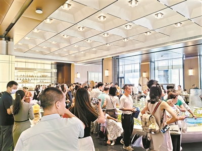 这个长假,楼市迎来了久违的真正“黄金周”,多个楼盘项目忙不迭发布“捷报”。长假头几天,各大楼盘现场尤其热闹:看房客在停车场找不到车位、在销售中心找不到空座位、在水吧服务台分不到饮品……而销售人员更是近年第一次出现“工作量饱和”,忙得午晚餐都吃不上。“我在工作群里说得最多的几句话就是‘快,来人接待’‘这边需要同事帮忙’……”海珠区某热门楼盘的现场负责人告诉记者,多个楼盘负责人也表示,假期几天人气是平时周末的数倍。