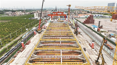 穿越珠江出海口,是南珠(中)城际建设的一大难点,盾构机需下穿广州、中山之间的洪奇沥水道,长度达1430米。当前,唯一负责线路“穿海”任务的盾构机已由中山的香二盾构井始发,将要完成三千多米的区间隧道掘进任务,最后在广州的二十涌盾构井吊出。