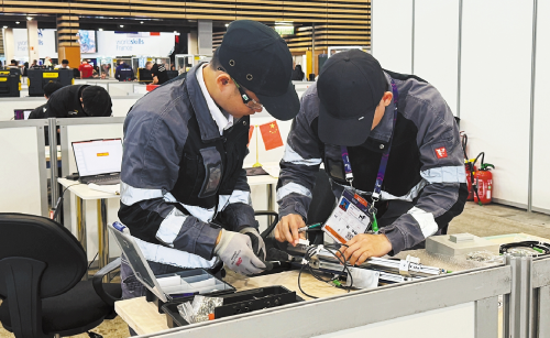 随着智能制造的发展,机器人系统集成人才需求越来越多,本届世赛新增机器人系统集成项目作为正式比赛项目。来自广州市机电技师学院的刘富强、吴龙辉组队代表国家参赛,凭借高超技艺和沉稳心态克服困难,夺下一枚宝贵的金牌,实现我国“参赛即夺冠”。