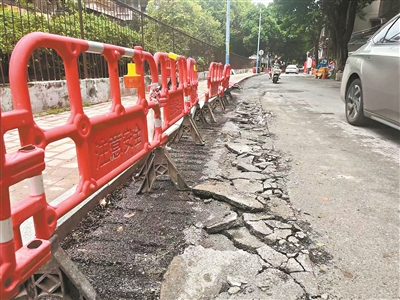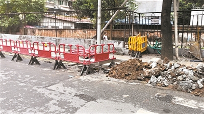 陈叔告诉记者,改造工程后来还在小区内开挖,对排污渠进行修复。直到现在,该小区靠近飞鹅路的区域仍有地方没有铺上地砖。“陆陆续续挖了一年,给我们的生活带来很大影响。”陈叔表示,受施工影响,飞鹅路沿途尘土飞扬,噪声也较大,而且一些施工建筑的渣土和废料都堆积在路边,居民经过存在被绊倒的风险。