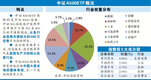 “中证A500是代表沪深两市较好大市值公司的指数,其类似于标普500指数,具有整个A股大盘‘定海神针’的作用。”止于至善投资基金经理何理表示。