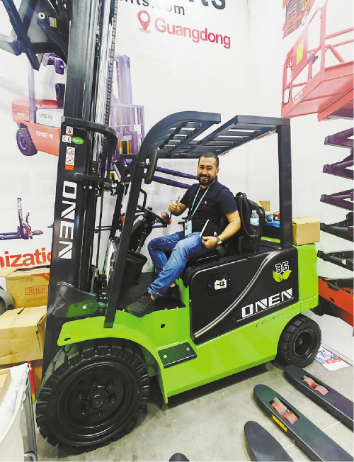 广东欧能新能源设备有限公司这次带来的新产品——两米多高的锂电叉车在展位上尤其抓人眼球。该公司销售经理黎卓杰介绍,这是公司首次在广交会上展出的锂电叉车,仅需充电1.5小时便能持续工作6—7小时,相较于燃油车,其作业成本具有显著优势。据了解,该公司向客户提供“定制化”服务,在电池容量、车辆载重、充电桩安装等方面,可为客户提供“一站式”解决方案。