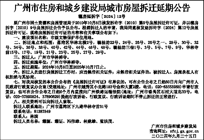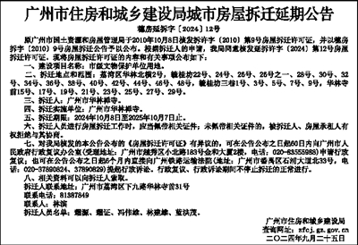 广州市住房和城乡建设局城市房屋拆迁延期公告
