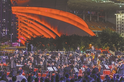珠江之畔,广州塔下,华章奏响。宛转悠扬的曲调,叠起叠落的音浪……随着国家一级指挥、中国人民解放军军乐团常任指挥张治荣执棒引领的《山岳畅想》旋律响起,现场观众宛若亲身走进秀美山川,整场音乐会正式拉开序幕。