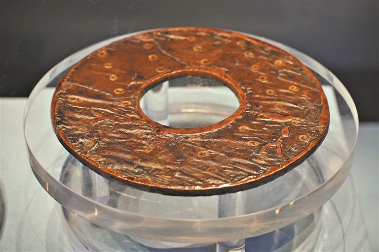 东山大墓出土的几件精美漆木器是首次面向公众展出。1996年农林上四横路发掘的东山大墓为一座西汉时期的大型木椁墓,距今2100多年,出土漆、木、陶、玉、铁、竹各类文物430余件(套)。该墓出土的漆木器包含有漆璧、案、 耳杯、多层果物架、匙、木厕等多个类型,含有“水”“工平”“工萬”“工恶”“樊後”等300多个漆绘及刻画文字符号,十分珍贵。2016年,广州市文物考古研究院委托湖北省博物馆对出土的31件漆木器进行保护修复。记者在现场看到,这批展品虽然经过了2000年的时光磨砺,依然熠熠生辉,展现出惊人的美感。
