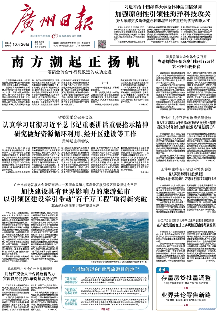 - 加快建设具有世界影响力的旅游强市以引领区建设牵引带动“百千万工程”取得新突破 广州日报讯 (全媒体记者吴城华、方晴、贾政 通讯员史伟宗)昨日,广州市旅游发展大会暨环南昆山—罗浮山县镇村高质量发展引领区建设推进会召开,深入学习贯彻习近平总书记关于旅游发展的重要论述和视察广东
