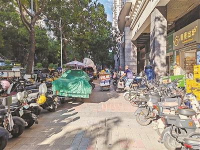 最让居民不满的是该路段到处乱停放的电动自行车和共享自行车。这些车辆除了摆放杂乱无章、占据人行道空间外,还侵占盲道,妨碍残障人士通行。更有甚者,有的共享自行车被乱扔在绿化带里,并未得到清理。