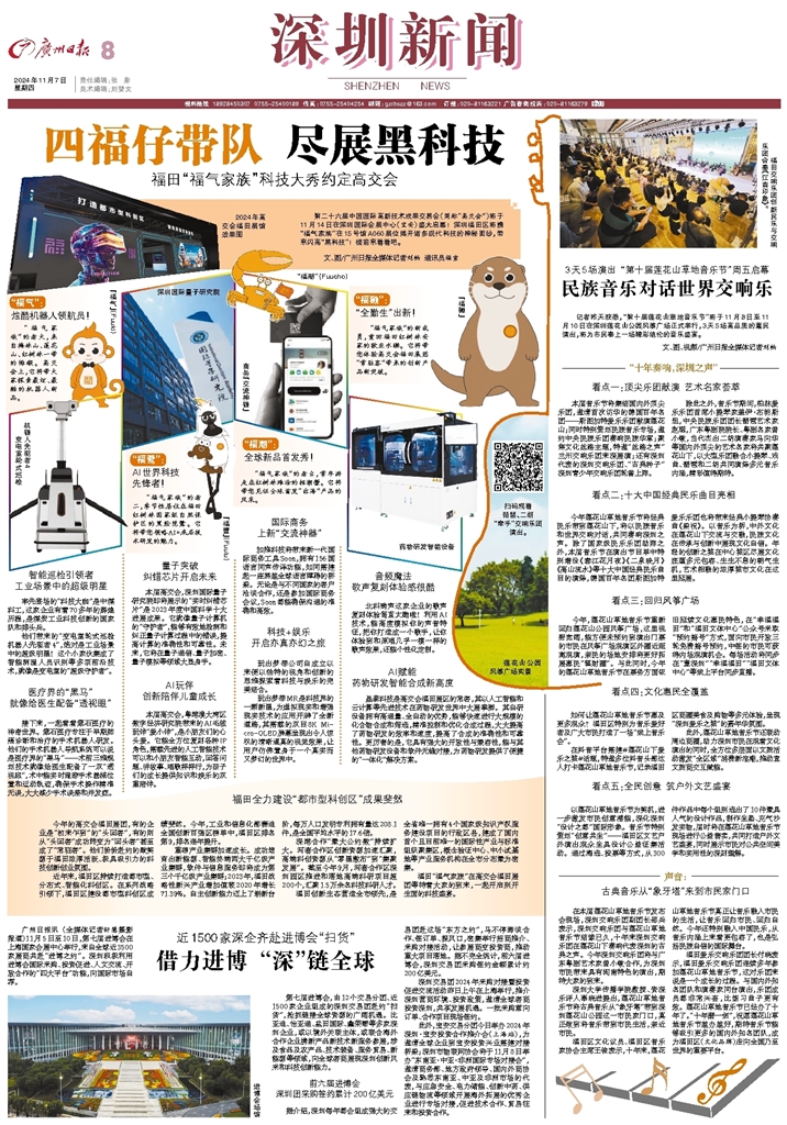 - 借力进博 “深”链全球 广州日报讯 (全媒体记者轩慧摄影报道)11月5日至10日,第七届进博会在上海国家会展中心举行,来自全球近3500家展商共赴“进博之约”。深圳积极利用进博会国际采购、投资促进、人文交流、开放合作的“