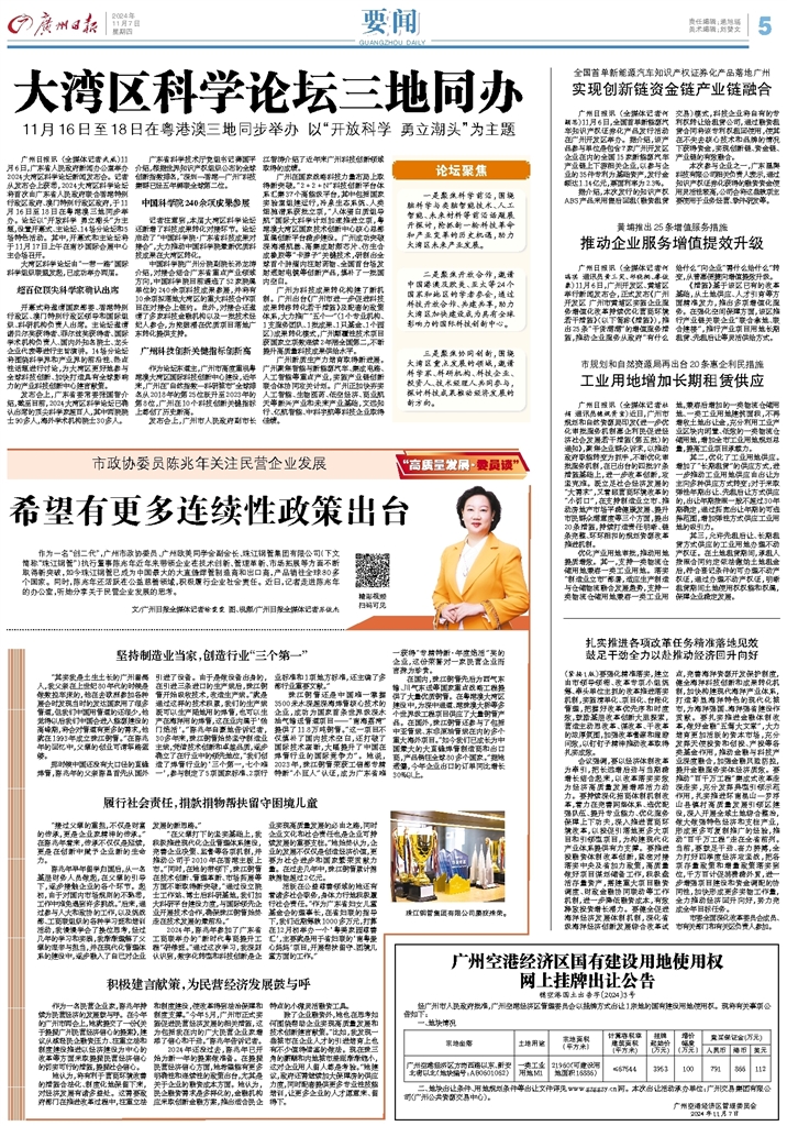 - 希望有更多连续性政策出台 “高质量发展·委员谈” 作为一名“创二代”,广州市政协委员、广州欧美同学会副会长、珠江钢管集团有限公司(下文简称“珠江钢管”)执行董事陈兆年近年来带领企业在技术创新、管理革新、市场拓展等方