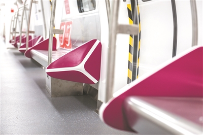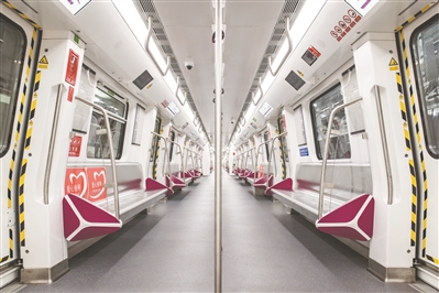 在内饰设计方面,新车普通车厢的扶手和座椅边框均设计为蓝紫色,座椅两侧设有花瓣图案。在便民设施、技术应用以及环保方面,11号线新型列车更是“科技满满”,每节车厢都贴心配备了手机无线充电设施,可为乘客为手机充电,解决“电量焦虑”。新型列车还采用了多种气密控制技术,可降低车内气压变化,进一步提升乘客乘坐的舒适性。除此之外,11号线新型列车应用了永磁牵引系统,牵引节能20%以上,并且在列车构造上充分使用环保铝型材、铝蜂窝、铝板等节能材料,减轻了车体重量,提升了运行性能,还显现出深圳城市轨道交通进一步向绿色化、环保化及高效化转型。