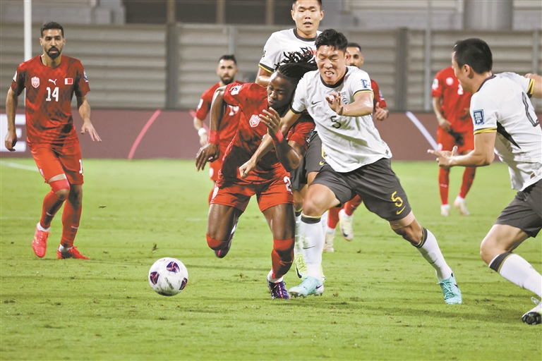 开场后,巴林队在主场3万名球迷的呐喊声中抢攻在前。不过,由于巴林队球员的个人技术能力并不突出,因此国足防线并未经受太大考验。第11分钟,国足打出一次成功的反击,张玉宁单刀突入对方禁区右脚推射,可惜被反应神速的巴林门将化解,这也是双方上半场最有可能破门的一次机会。半场战罢,中巴两队以0比0战平。不过,李磊在第19分钟因伤被胡荷韬换下,国足的左路防守存在隐忧。而拜合拉木领到一张黄牌,他将缺阵下轮主场对日本队的比赛。