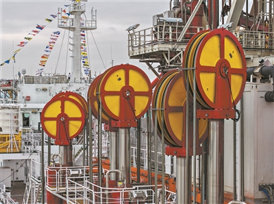 为此,“梦想”号配制了全球首台兼具油气勘探和岩心钻取功能的液压举升钻机,顶驱的举力达到907吨,具备4种钻探模式和3种取心方式,可满足大洋钻探取心和深海大洋矿产资源勘探开发等不同作业需求。
