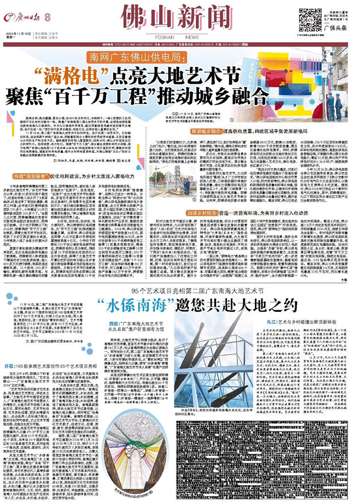- “满格电”点亮大地艺术节 聚焦“百千万工程”推动城乡融合 烟雨古桥、流水潺潺、青石小巷,在600年古村村口,木棉树下,一栋2层楼的工业风咖啡厅与古老村庄融为一体。随着广东南海第二届大地艺术节的开幕,全球各地游客慕名前来南海九江烟南村。作为九江烟南村导赏员