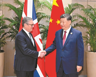 新华社里约热内卢11月18日电 (记者孙浩、赵焱)当地时间11月18日上午,国家主席习近平在里约热内卢出席二十国集团领导人峰会期间会见英国首相斯塔默。