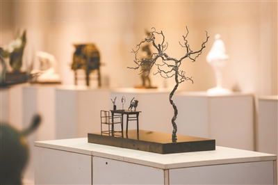 在雕塑主题展区,“寻常观照——广州雕塑院作品展”吸引了大批观众驻足。这里展出了广州雕塑院二十多位雕塑艺术家的共计27件作品。“公共艺术注重观众体验,让艺术走进生活。”广州雕塑院工作人员陈文仪介绍,“展出的雕塑在表达形式、创作手法、材料等各方面都比较多元,希望向观众展示雕塑更丰富的样貌。”