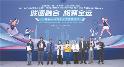 11月29日,由十五运会和残特奥会广州赛区执委会主办的“联通融合 相聚全运——中外友人体育文化交流故事会”在广州市智慧城市运行中心多功能厅举行。活动邀请了来自西班牙和阿根廷的西语文学家代表、国内文学家代表、体育界代表,分享他们的经验和见解,探讨通过体育与文化的进一步交互共融,为即将到来的体育盛会贡献力量。