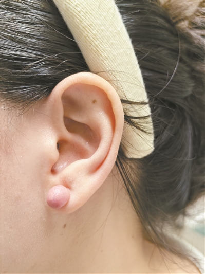 “近年来,因打耳洞造成的疤痕疙瘩越发常见,我在门诊一年大概能见十几例吧。”皮肤科熊斯颖副主任医师告诉记者,因为备孕需求上的考虑,患者现在先保守治疗,未来可以在手术切除后联合点阵二氧化碳激光治疗。