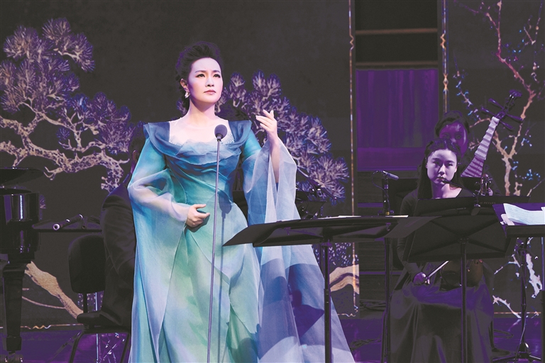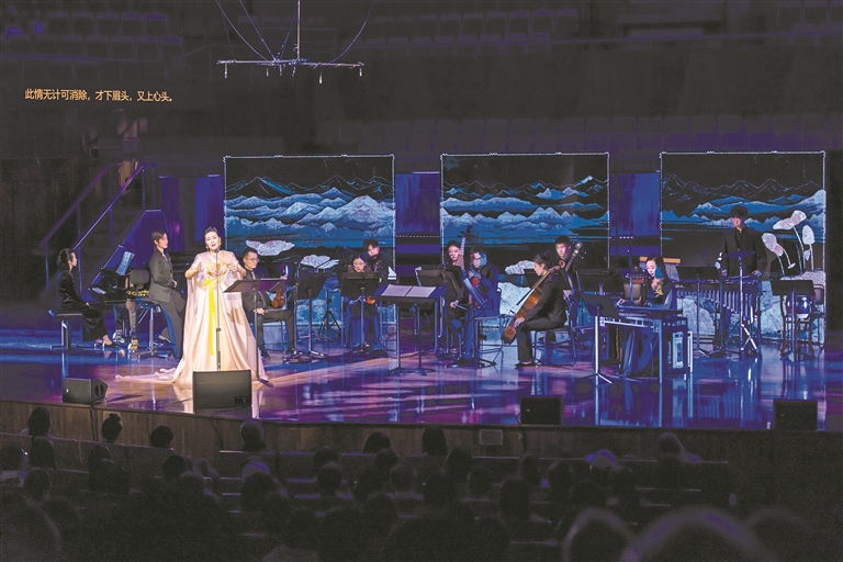 12月6日晚,星海音乐厅座无虚席,著名歌唱家雷佳领衔演出的“时间的诗意——跨界融合诗词作品音乐会”隆重上演,通过独唱、舞蹈、朗诵、室内乐和民族器乐等多种艺术形式的跨界融合,结合现代多媒体技术,为观众呈现了关于时间的无限诗意。