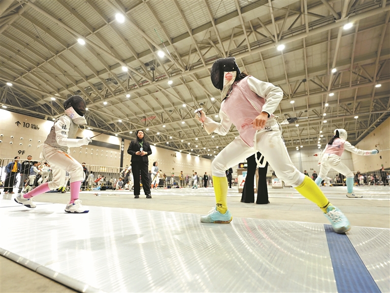 一群英姿飒爽、身穿白色击剑服、头戴击剑帽、手执长剑的少年,成为佛山潭洲国际会展中心的一道独特的风景。