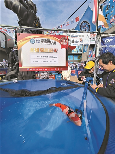 这不仅是一场锦鲤“比美”的盛宴,更是锦鲤产业“比拼”的舞台。记者在现场采访时获悉,中国锦鲤养殖技术正不断提升。有大赛评审专家表示,中国锦鲤养殖呈现“百花齐放”的状态,锦鲤养殖技术进步较大,中国培育的优质锦鲤在国际市场上具有较强竞争力,引发全球关注。
