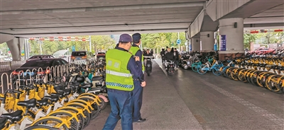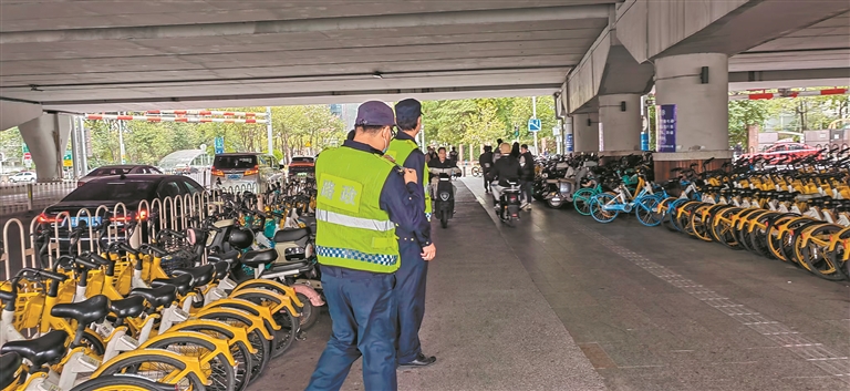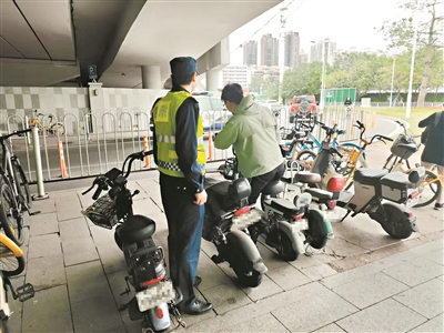 引导“电鸡”停至路边 协调附近写字楼开辟员工停放区