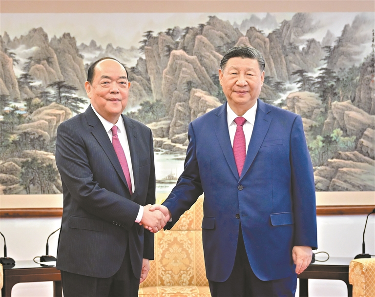 12月18日下午,国家主席习近平在澳门会见澳门特别行政区行政长官贺一诚。新华社发