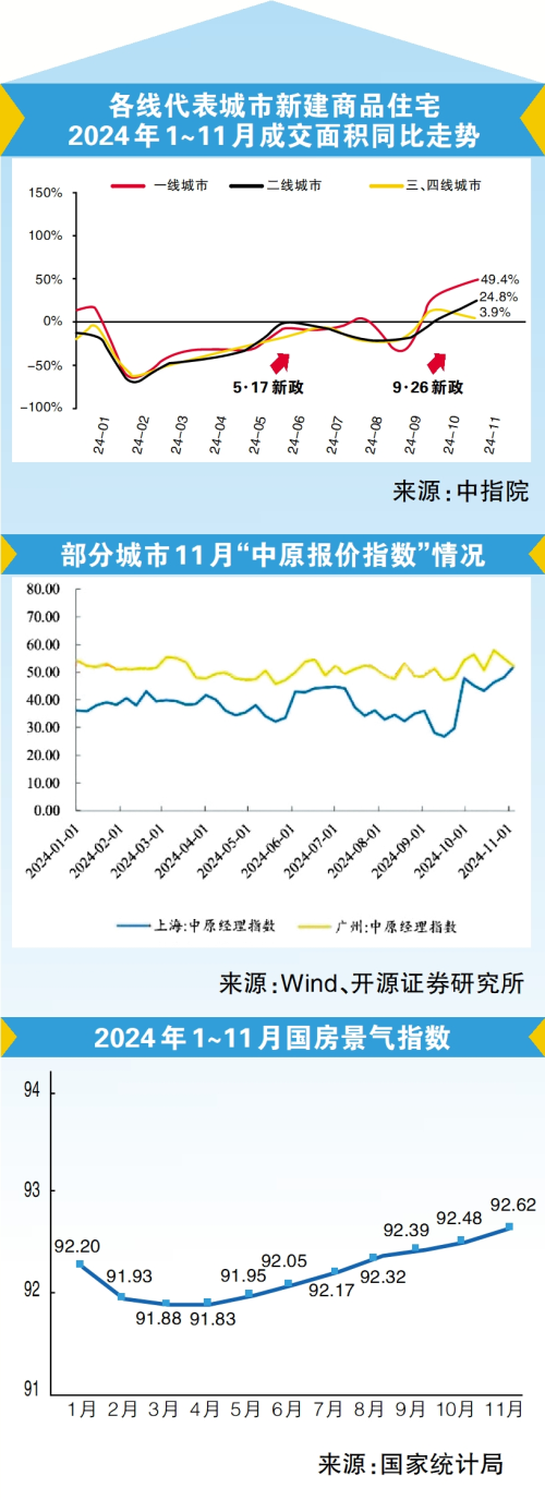 2024年,“稳楼市”政策信号不断释放,市场信心持续增强。进入四季度以来,行业基本面呈现回暖态势。12月,中央经济工作会议强调“持续用力推动房地产市场止跌回稳”,为2025年的楼市定下了基调。