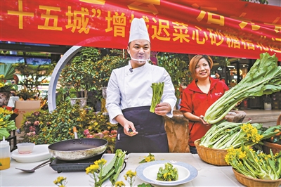 厨师现场展示盐水清炒迟菜心。广州日报全媒体记者吴子良 摄