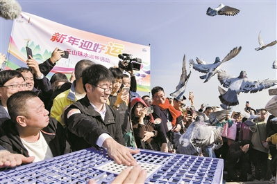 上百只和平鸽被放飞,人们许下对全运会的美好祝福。广州日报全媒体记者杨泽彬摄