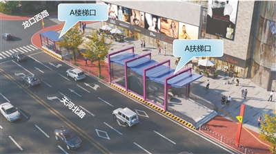 记者在地面看到,龙口西站A口所在的人行道,夹在马路和高层建筑之间,宽度十分有限,可谓“捉襟见肘”。建地铁口既要保证人行道通行能力,不能占用车行道影响交通,也不能因此迁走高层建筑,但又要方便乘客出入,满足防火安全和规范要求,最终实施的方案可谓做到了“既要又要还要”。